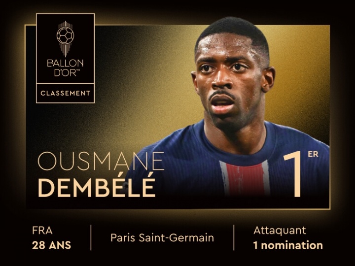 金球奖分数公布:登贝莱1380分第一!亚马尔1059分 拉菲尼亚620分