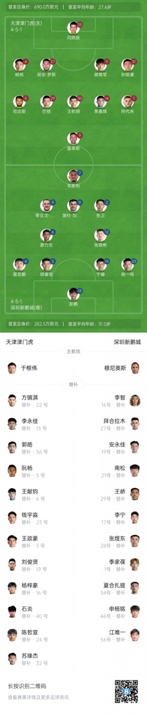 积分榜方面津门虎10胜7平7负,积37分排在联赛第7;深圳则是6胜2平16负,积20分排在倒数第四,高降级区3分。